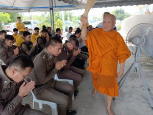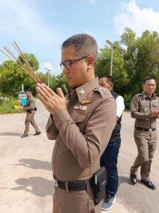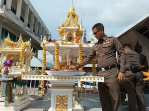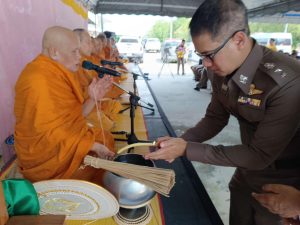 พร้อมคณะ กต.ตร.สภ.บ้านคลองสวน,ที่ปรึกษา กต.ตร.สภ.บ้านคลองสวน และ ข้าราชการตำรวจ สภ.บ้านคลองสวน จัดพิธีทำบุญถวายภัตตาหารเพลและสักการะสิ่งศักดิ์สิทธิ์ประจำ สภ.บ้านคลองสวน เนื่องในวันสถาปนาสำนักงานตำรวจแห่งชาติ