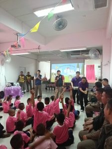 พร้อมตำรวจ สภ.บ้านคลองสวน บรรยายให้ความรู้และฝึกซ้อมแผนเผชิญเหตุ “หนี ซ่อน สู้“ ให้แก่คณะครูและนักเรียน โรงเรียนบ้านขุนสมุทรไทย ![]()
