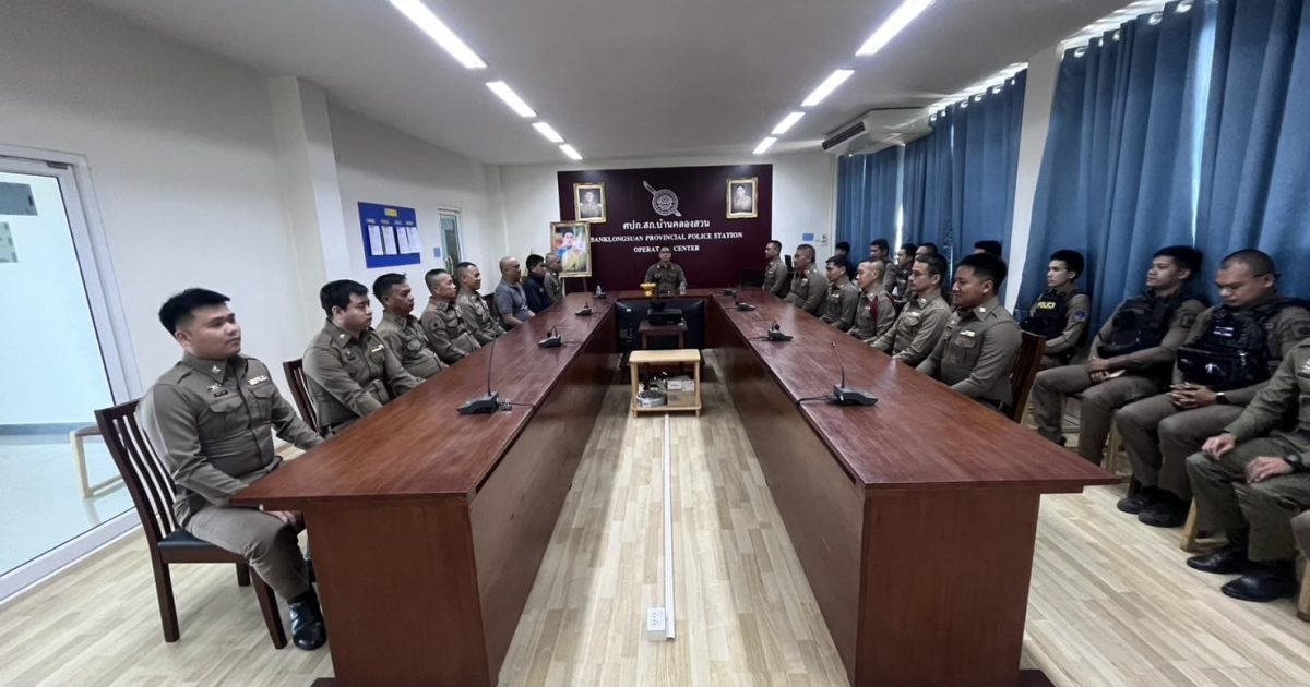 พ.ต.อ.ชาญชัย ฤทธิฦาชัย ผกก.สภ.บ้านคลองสวน พร้อมด้วย ข้าราชการตำรวจหัวหน้าสายงานทุกสายงาน ประชุมข้าราชการตำรวจ สภ.บ้านคลองสวน ประจำเดือน ชี้แจงข้อสั่งการและนโยบายของผู้บังคับบัญชา เพื่อนำไปปฏิบัติหน้าที่ต่อไป