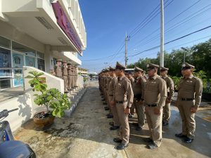 พร้อมกำลังข้าราชการตำรวจ สภ.บ้านคลองสวน ร่วมปล่อยแถวเคารพธงชาติเนื่องใน วันพระราชทานธงชาติไทย (Thai National Flag Day) เพื่อน้อมรำลึกในพระมหากรุณาธิ คุณของพระบาทสมเด็จพระมงกุฎเกล้าเจ้าอยู่หัว