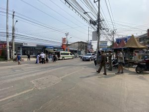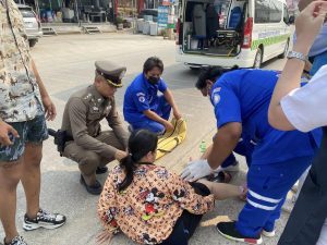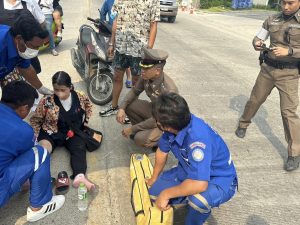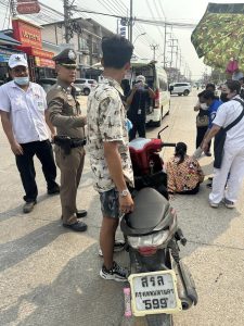 เข้าตรวจสอบเหตุ รถ จยย. เฉี่ยวชนกัน บริเวณ หน้าตลาดรวยมาเก็ต มีผู้บาดเจ็บเล็กน้อย เบื้องต้นนำ ส่ง รพ.เป็นที่เรียบร้อย