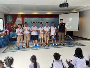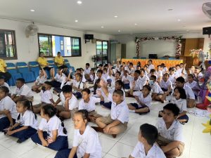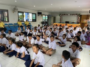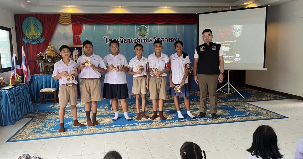 มอบหมายให้เจ้าหน้าที่วิทยากร สภ.บ้านคลองสวน อบรมให้ความรู้เกี่ยวกับยาเสพติดและบุหรี่ไฟฟ้า แก่นักเรียนประถมศึกษาปีที่ 1 – 6 โรงเรียนชุมชนวัดสาขลา
